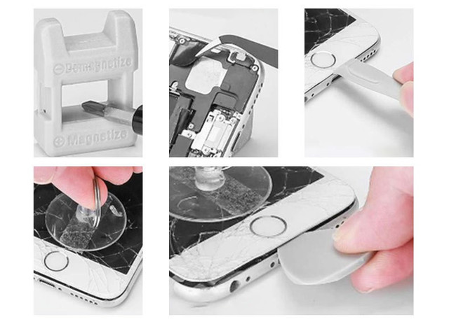У наборі Ви знайдете спеціальні інструменти, такі як відкривачки, присоски та пінцети, що допоможуть Вам обережно відокремити старий дисплей від корпусу і встановити новий дисплей з високою точністю.