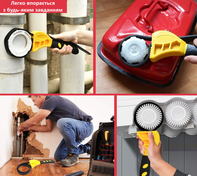 Універсальне застосування: Наш стрічковий ключ підходить для різних завдань, включно з відкриванням банок, зняттям фільтрів, роботою з фітингами і трубами. Незалежно від розміру або форми об'єкта, цей інструмент впорається із завданням без проблем.