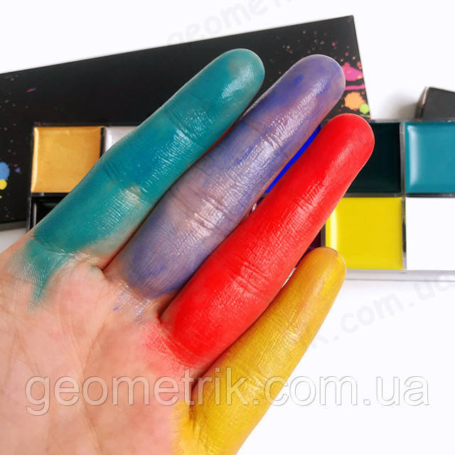 Після творчого процесу грим легко видаляється вологою серветкою не залишаючи слідів на шкірі.