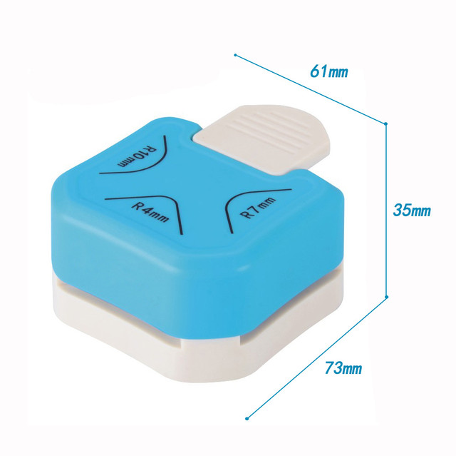 Кутовий діркопробивач - 3 радіуси: 4, 7, 10 мм - Скруглювач кутів R4 / R7 / R10 - blue
